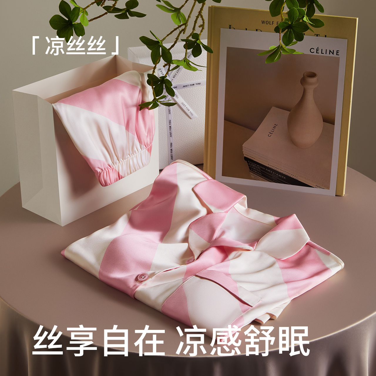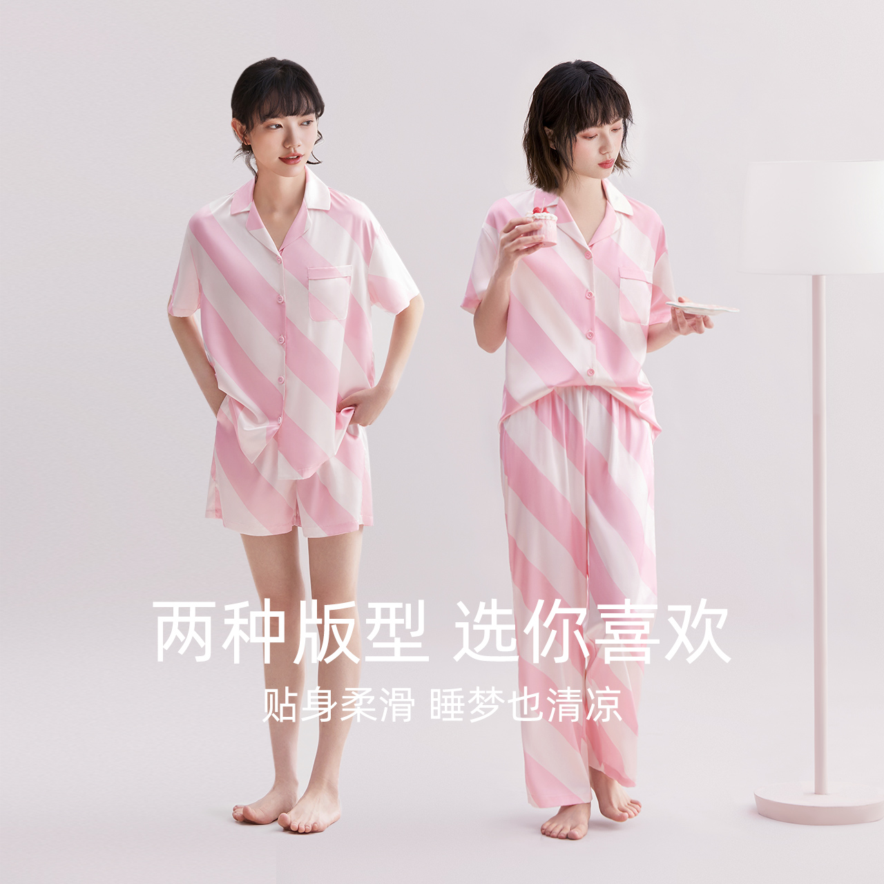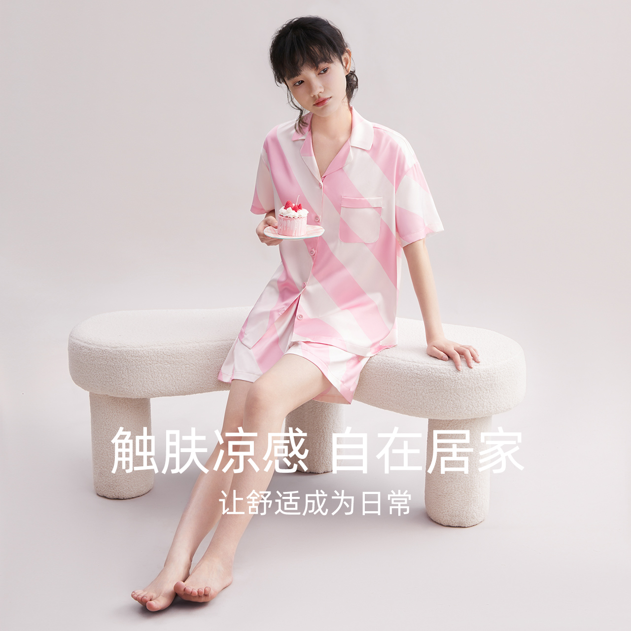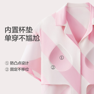 家居服套装 红豆女士睡衣冰丝短袖 凉感夏透气带胸垫防走光空调时尚