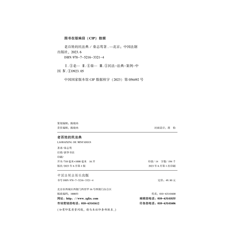 民法典 秦志莺 社 2023新书 9787521633214 中国法制出版 老百姓 生老病死 正版 一本书读懂民法典中