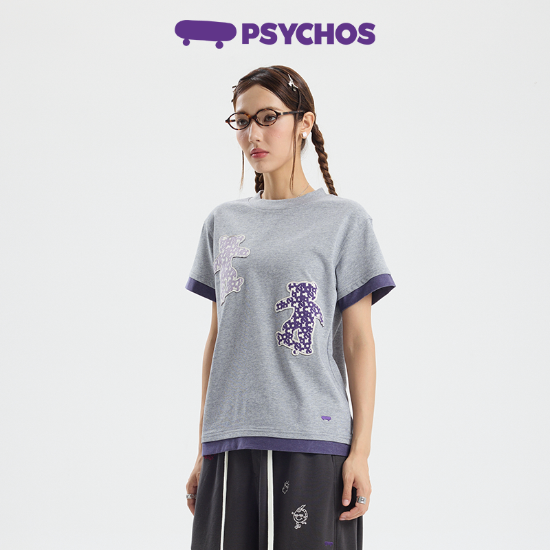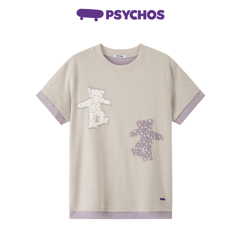 双色PSYCHOS镂空小熊印花休闲假两件纯棉短袖 PB2UBSV062 T恤男女款