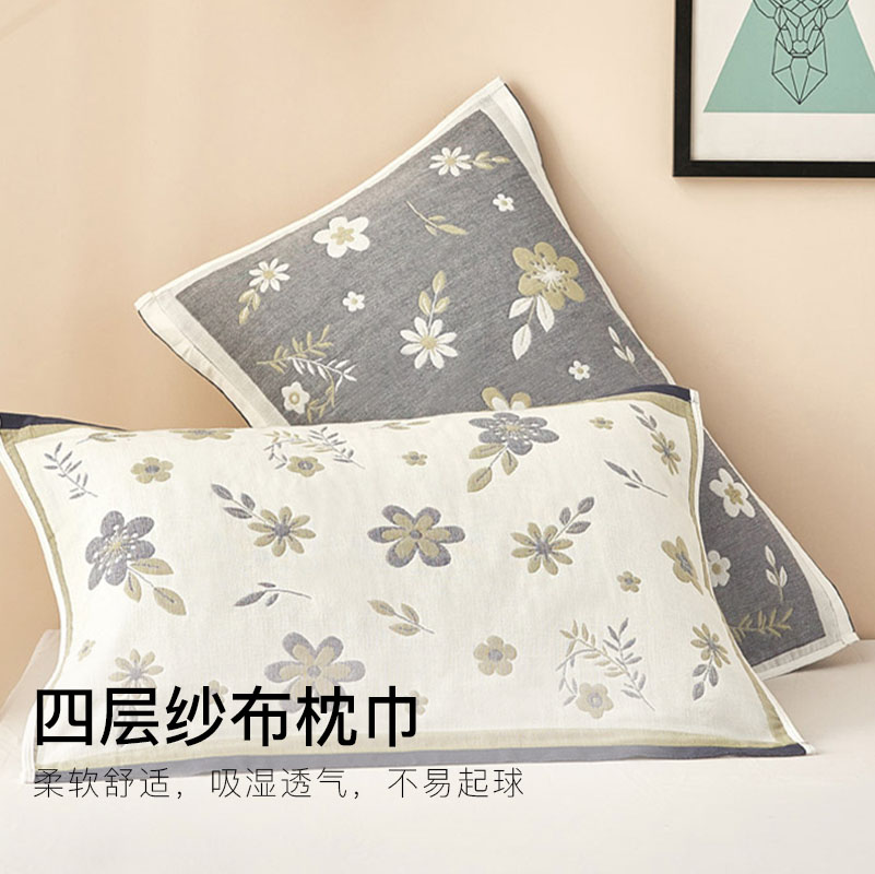高密纯棉纱布枕巾一对装 简约全棉柔软成人枕头巾吸汗透气家用盖巾
