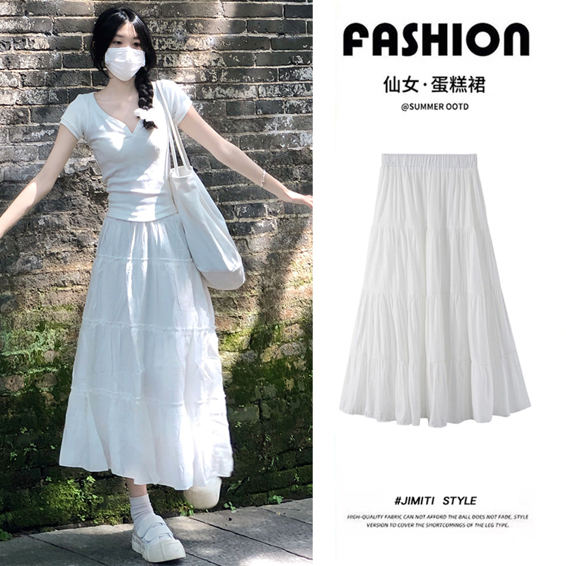 午后小憩 韩系白色刺绣蕾丝网纱屁帘半身裙女秋冬
