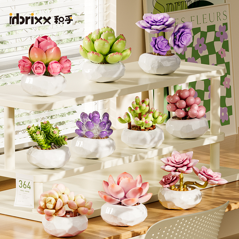 inbrixx积乎植物系列多肉盆栽拼装 玩具永生花束积木摆件节日礼物