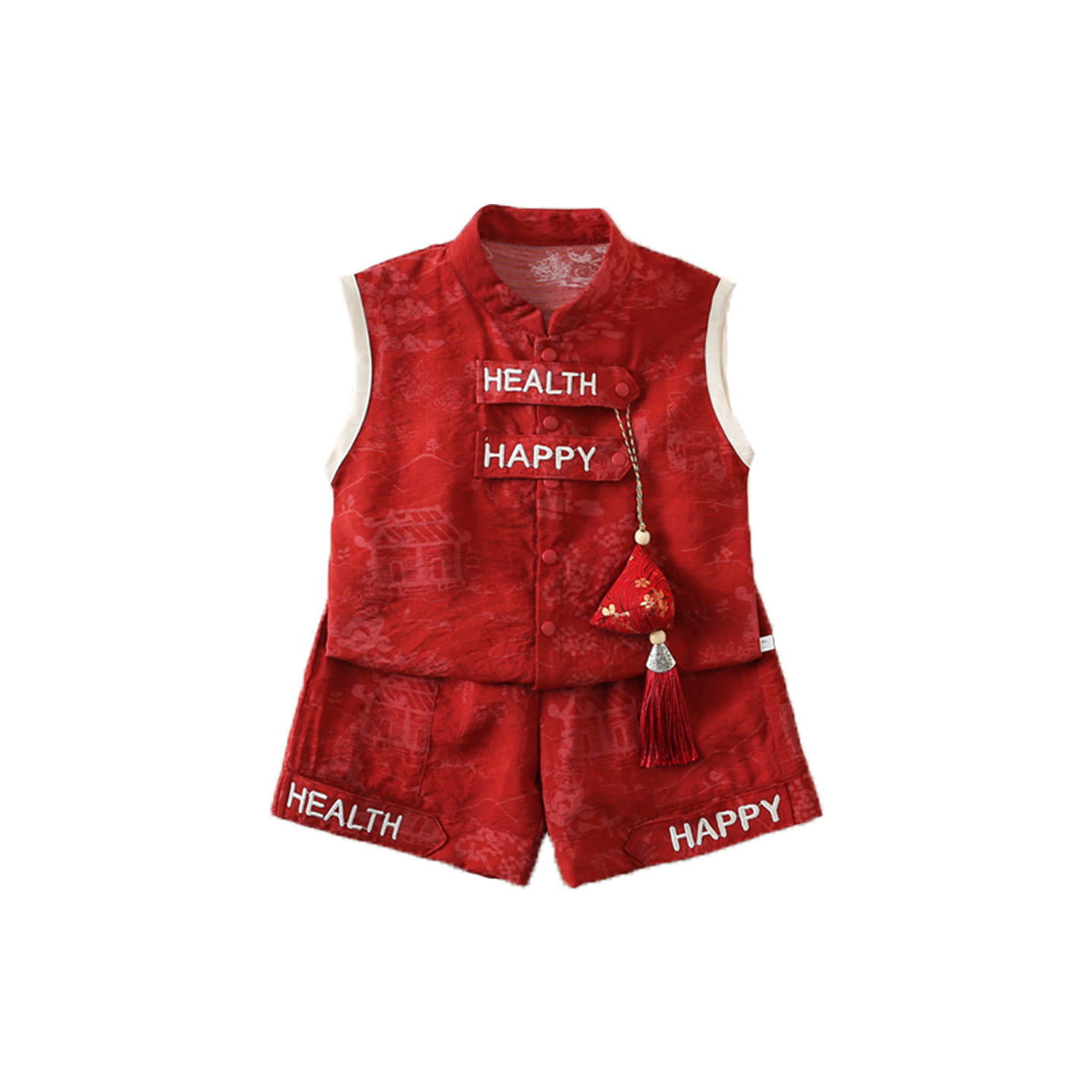分体衣服国风婴儿百天抓周岁礼服秋季 男童秋装 宝宝无袖 新中式 套装