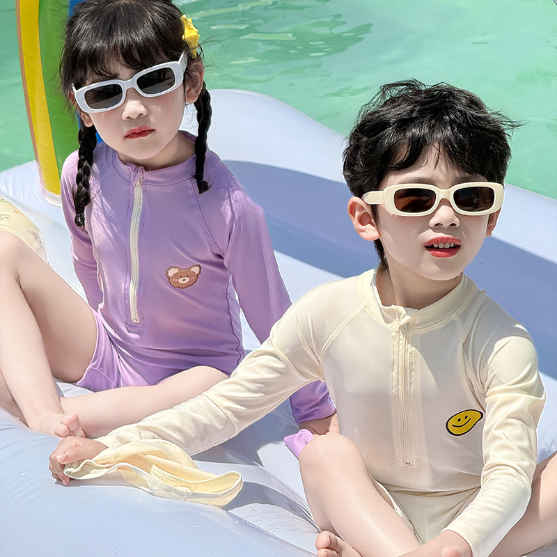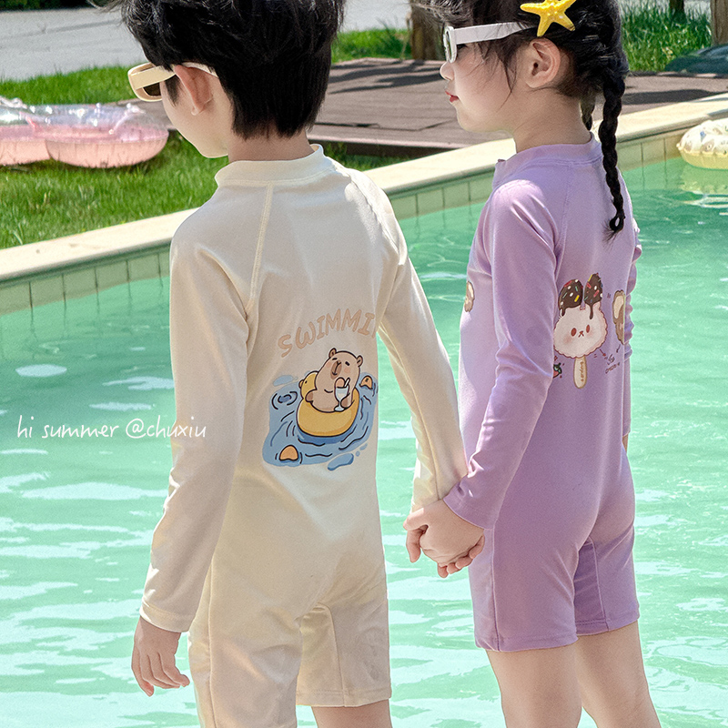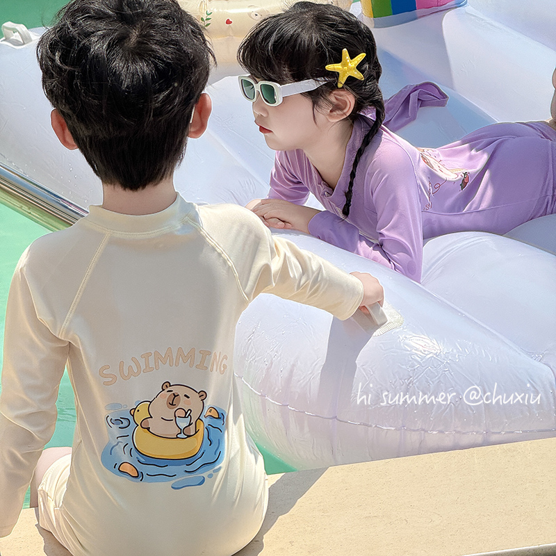 防晒专业游泳衣中小童男孩速干泳裤 新款 儿童泳衣女童卡通连体长袖