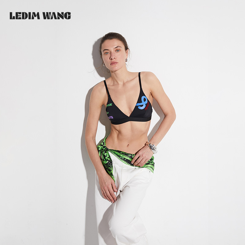 维密田曦薇同款 运动软支撑可外穿文胸女 果冻条字母肩带内衣背心式