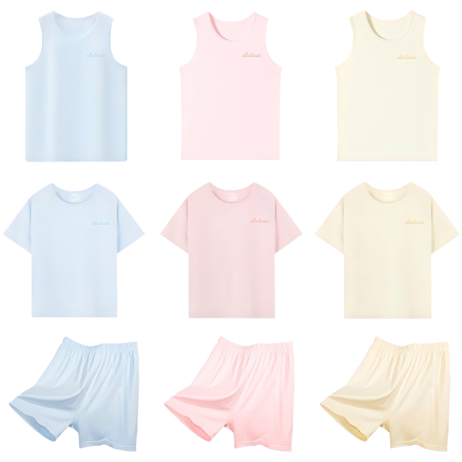 莱赛尔空调服 吸湿排汗短裤 爱拉图儿童家居服夏季 男童背心女童短袖