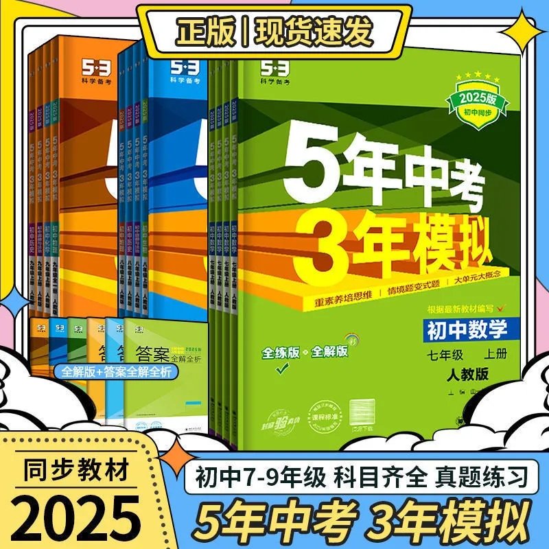 2025新版 同步练习物理科学新教材历史训练基础选择专项书籍 53五年中考三年模拟789七八九年级上册初中练习册语文数学英语人教版