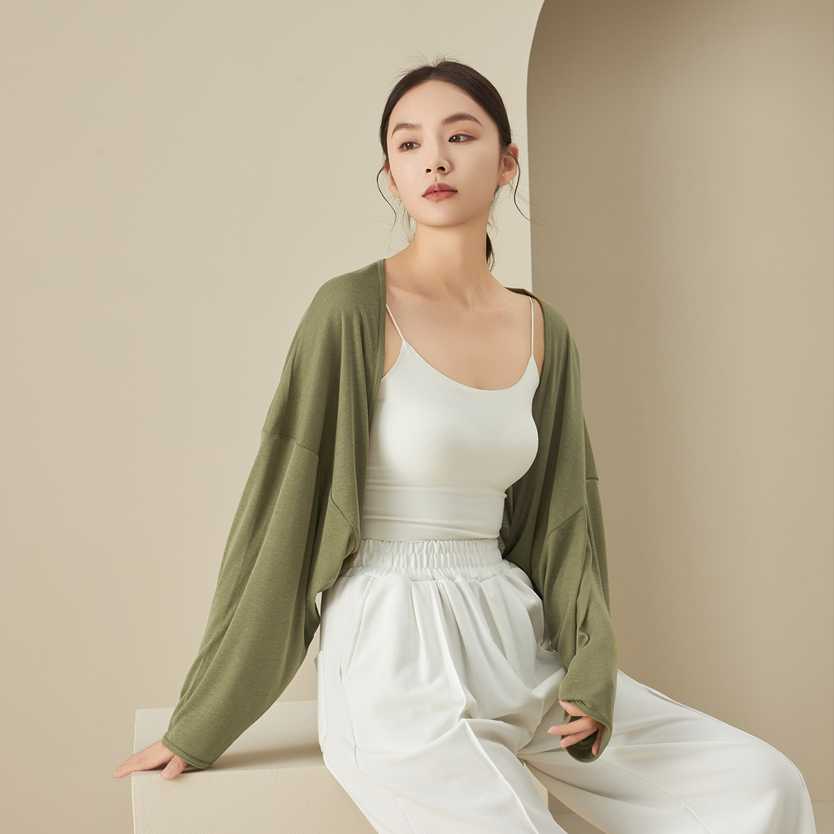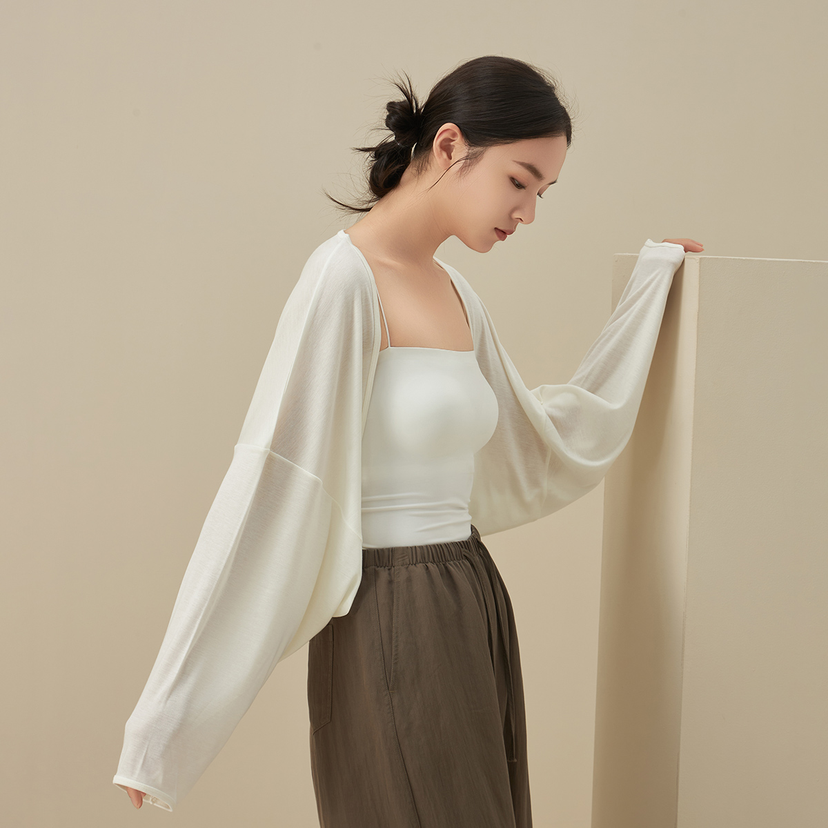 披肩衫 洋气长袖 女士春夏季 外套短款 坎肩外搭上衣 开衫 空调房蝙蝠袖