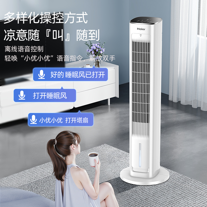 海尔空调扇家用电风扇节能语音塔扇摇头立式 水空调冷风扇冷气扇新
