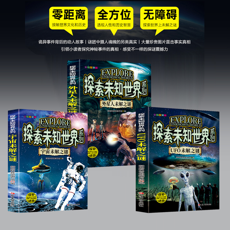 儿童科普百科全书6 探索未知世界系列UFO未解之谜 全3册 外星人未解之谜 15岁中小学生课外阅读 宇宙未解之谜谜