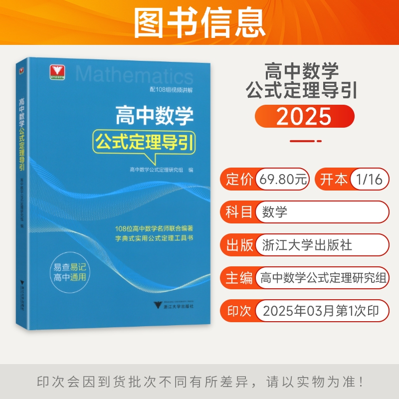 浙大数学优辅公式 定理导引 定理工具书高一二高中数学思想方法导引系列高考总复习新高考数学基础知识大全 2025高中数学公式 新品