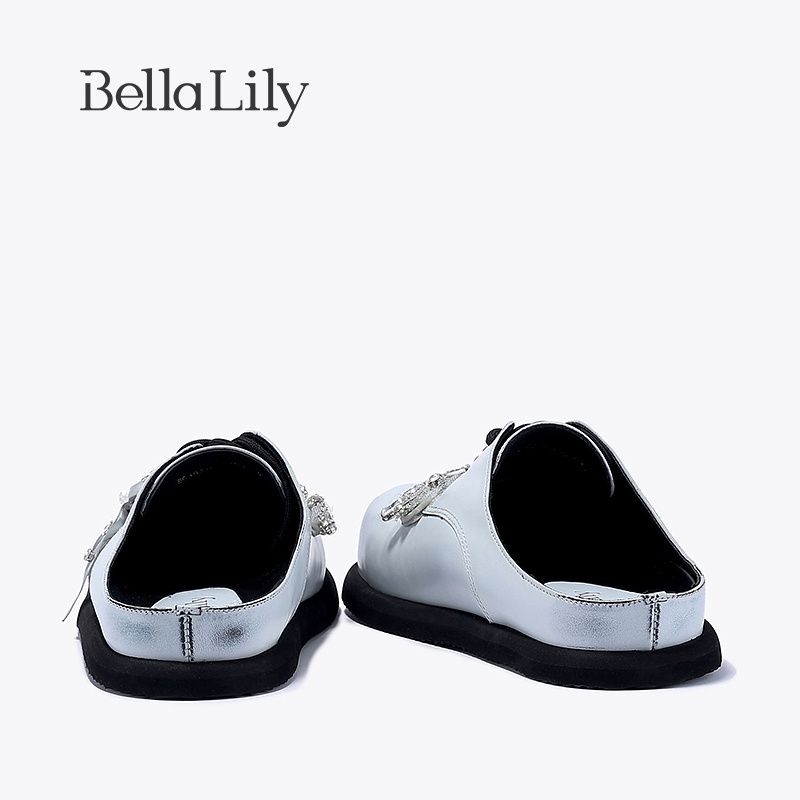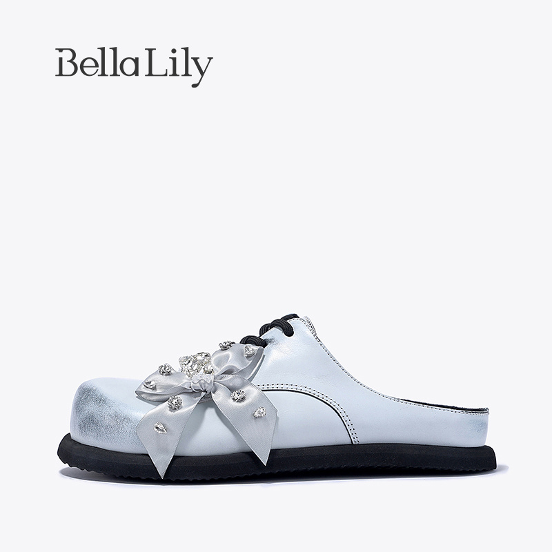 勃肯拖鞋 BellaLily新款 水钻圆头单鞋 女外穿脏脏鞋 蝴蝶结半包拖鞋