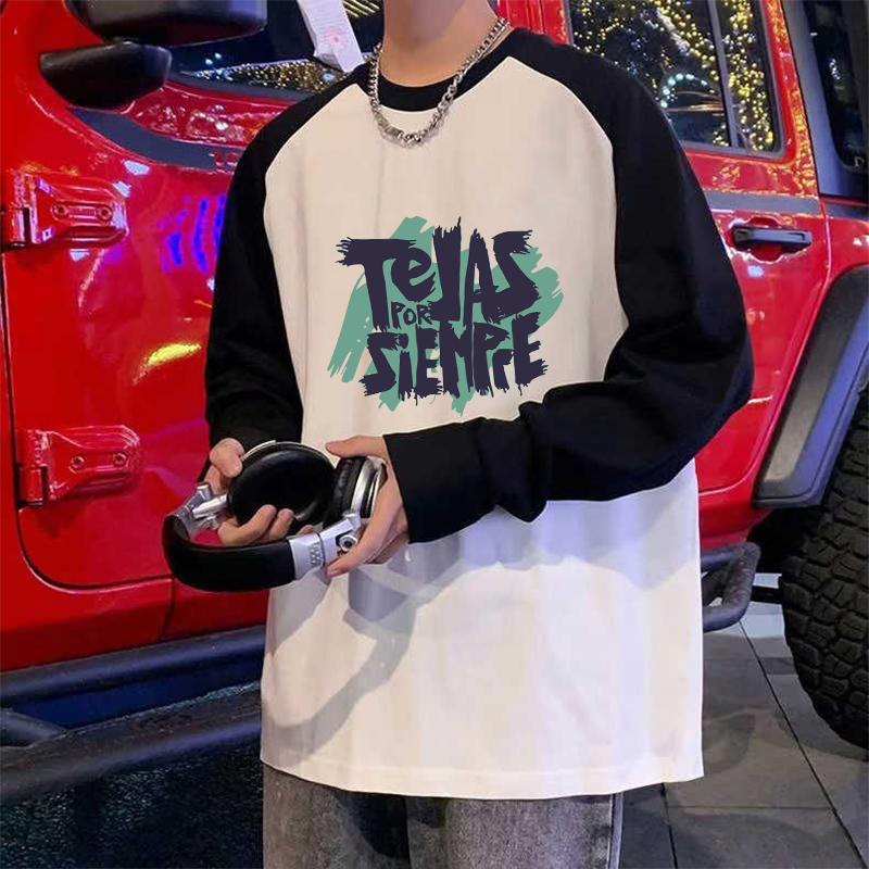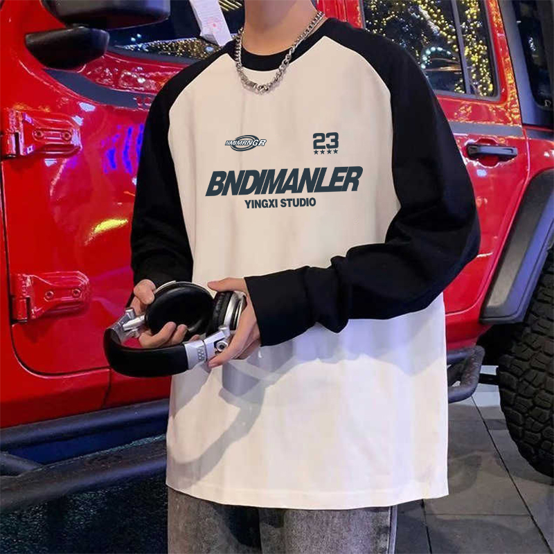t恤男士 插肩撞色打底衫 春秋季 宽松大码 上衣ins潮 2025新款 纯棉长袖