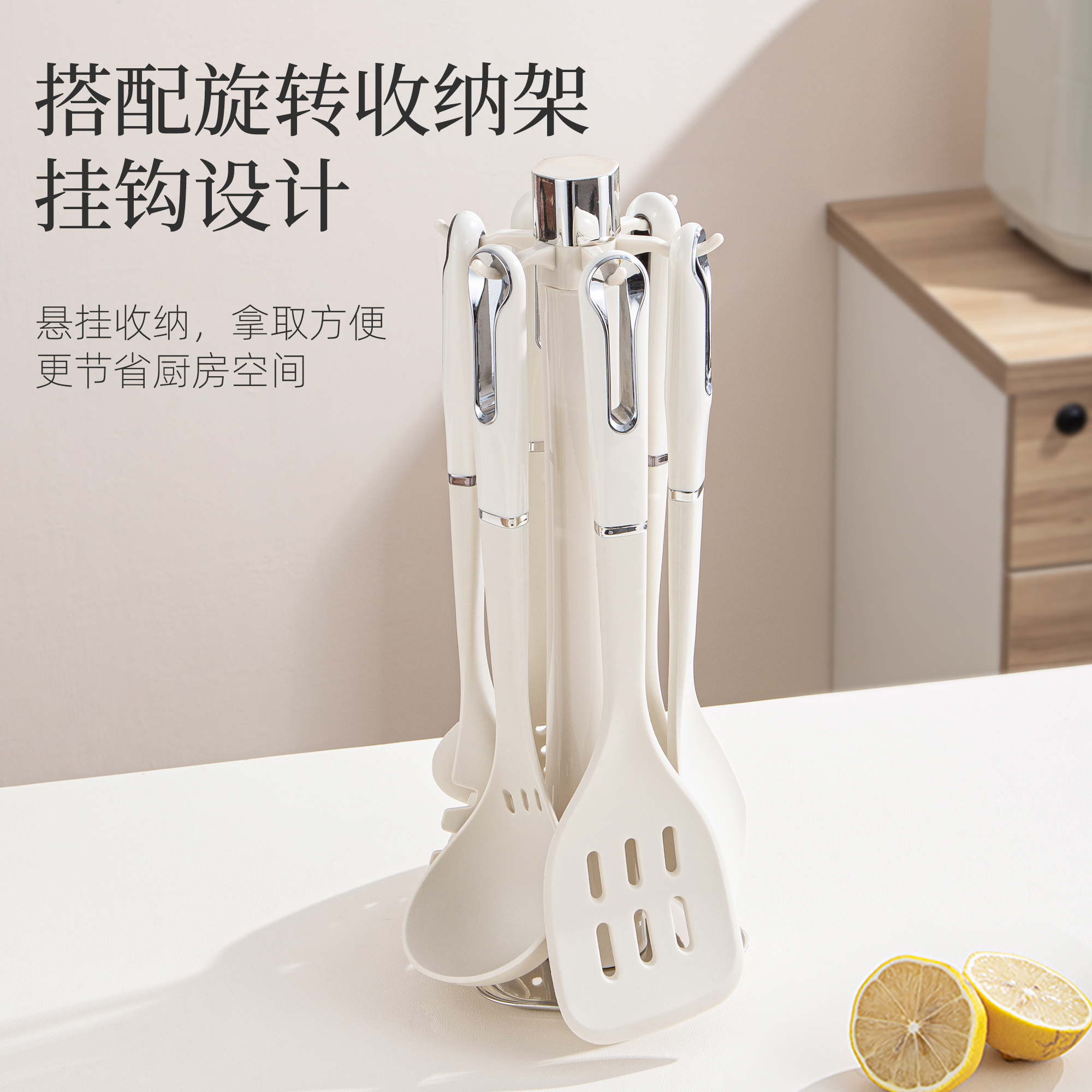 wuc硅胶厨具锅铲白色食品级炒菜铲子勺子汤勺漏勺厨房工具套装