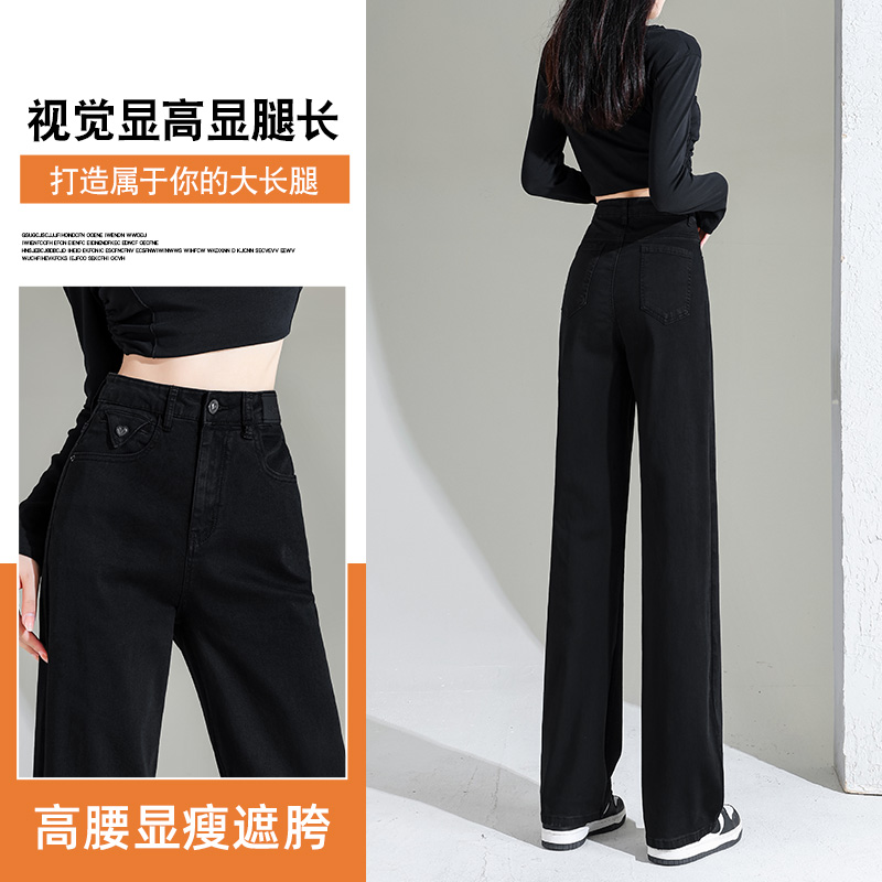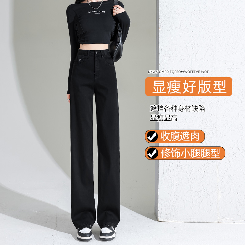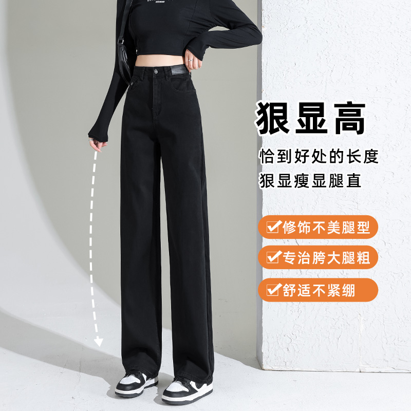 新含棉高腰阔腿裤 女2025秋季 复古通勤百搭老钱风 Moda牛仔裤 Vero