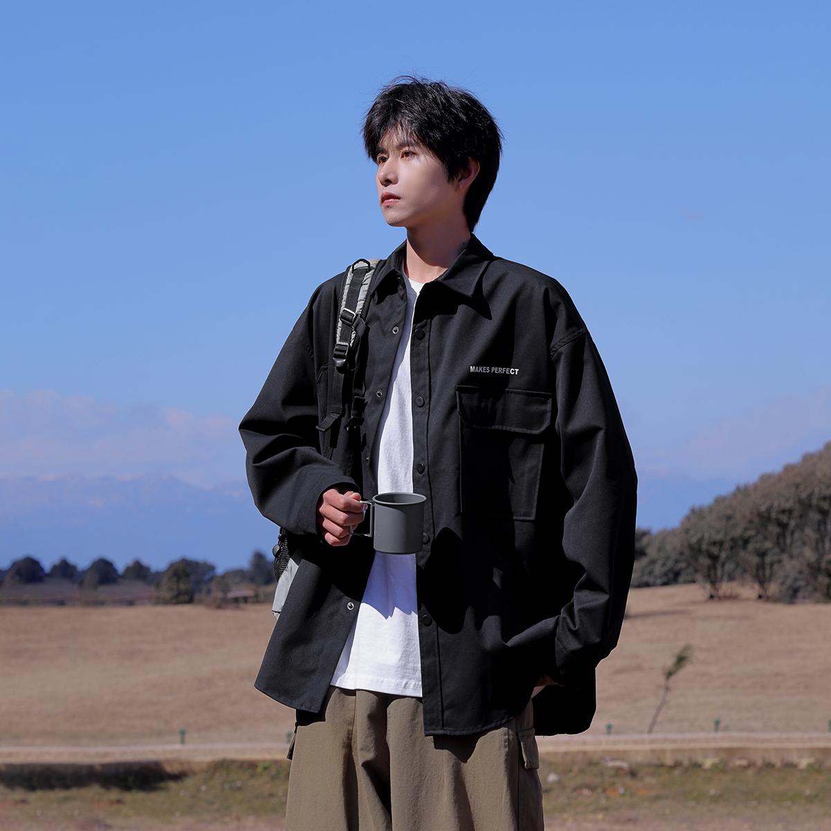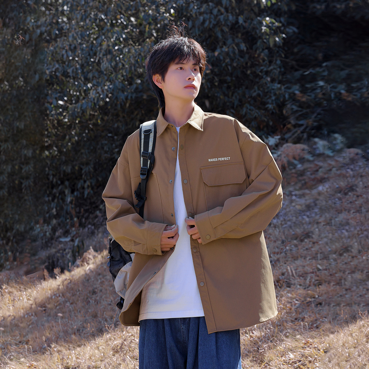 日系cityboy宽松长袖 男势纯色工装 2025春秋新款 男士 衬衣外套 衬衫