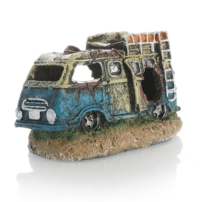 水族箱装 饰残骸鱼缸造景树脂工艺品鱼虾躲避摆件仿真汽车大巴车客
