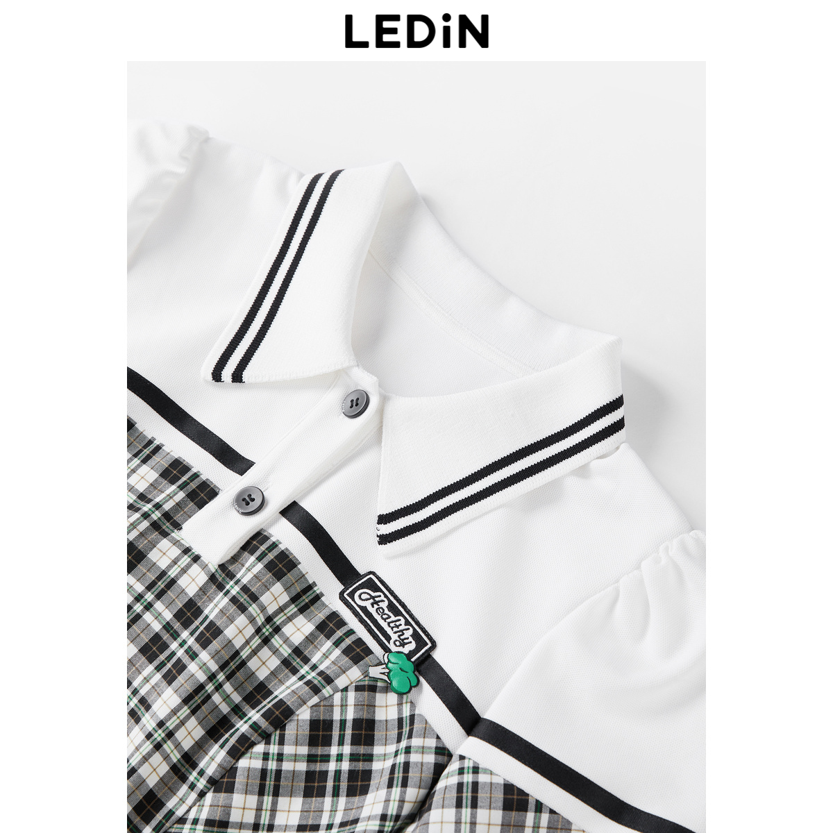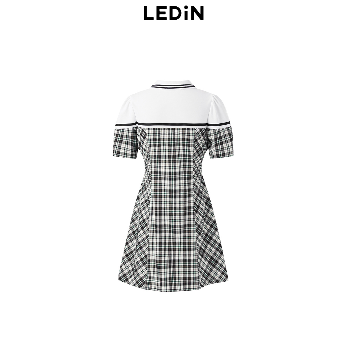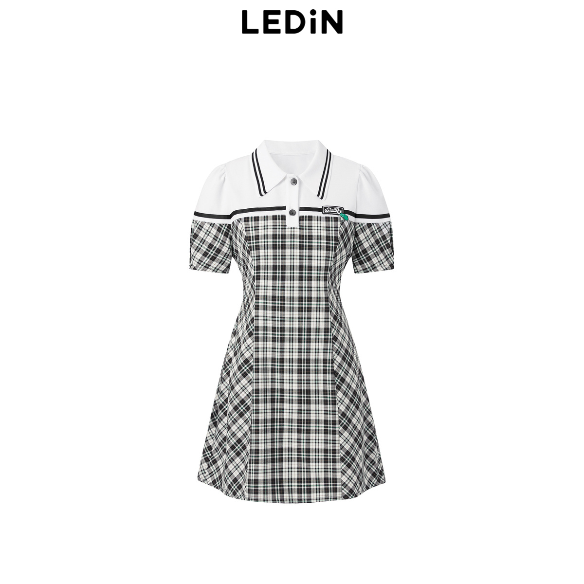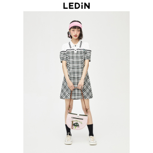 学院风休闲C3FAD2305 乐町拼接格纹连衣裙夏女装 清仓
