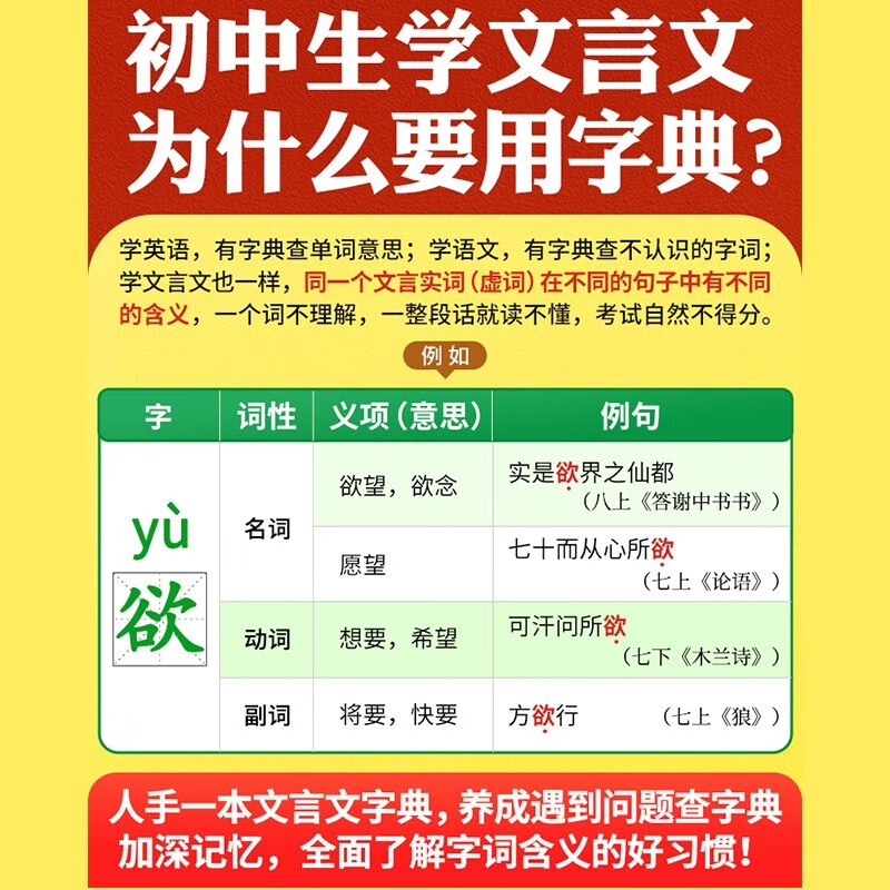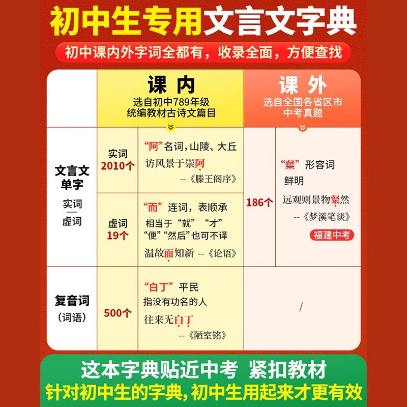 万唯中考初中文言文常用字字典词典七八九年级古诗词工具书初一初中生专用初二三语文古汉语辞典古诗词文言文实词虚词字典总复习