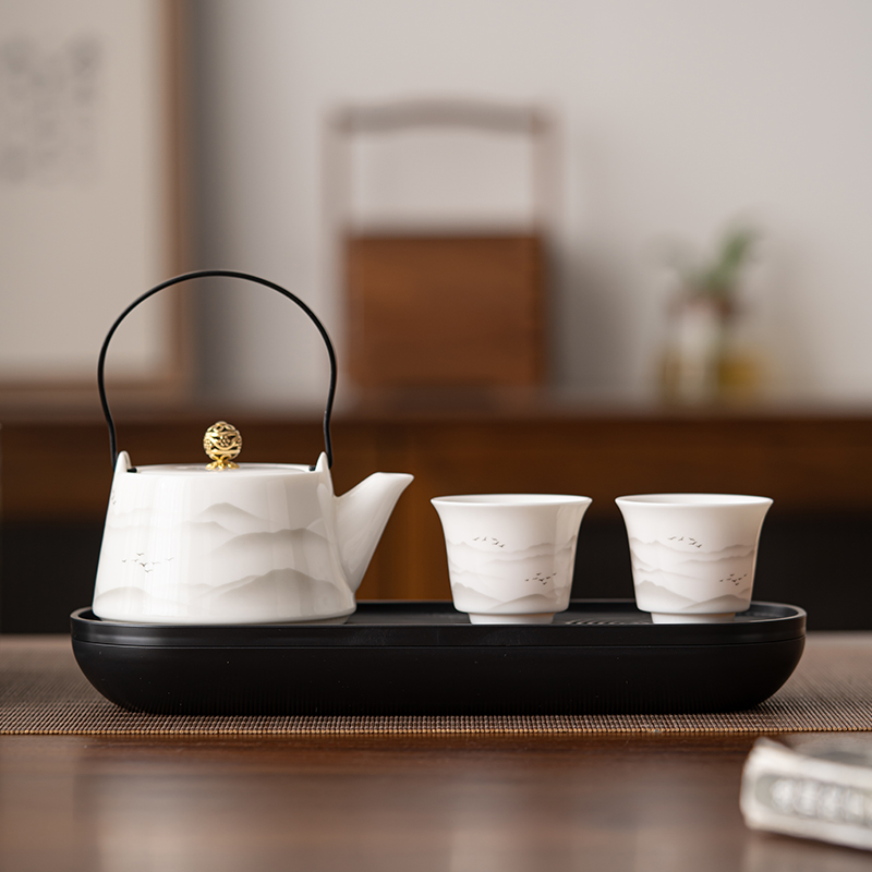 快客杯一壶露营陶瓷便携旅行茶具套装 功夫户外泡茶壶出差旅游茶杯