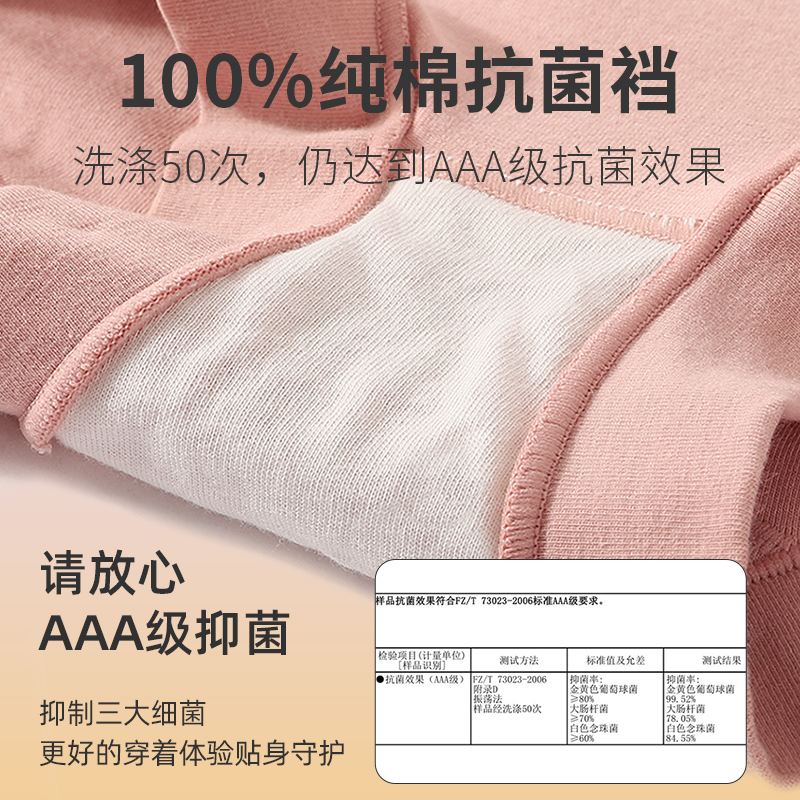 官方旗舰店0286 女士纯棉内衣抗菌中高腰小平角裤 ab内裤 4条装