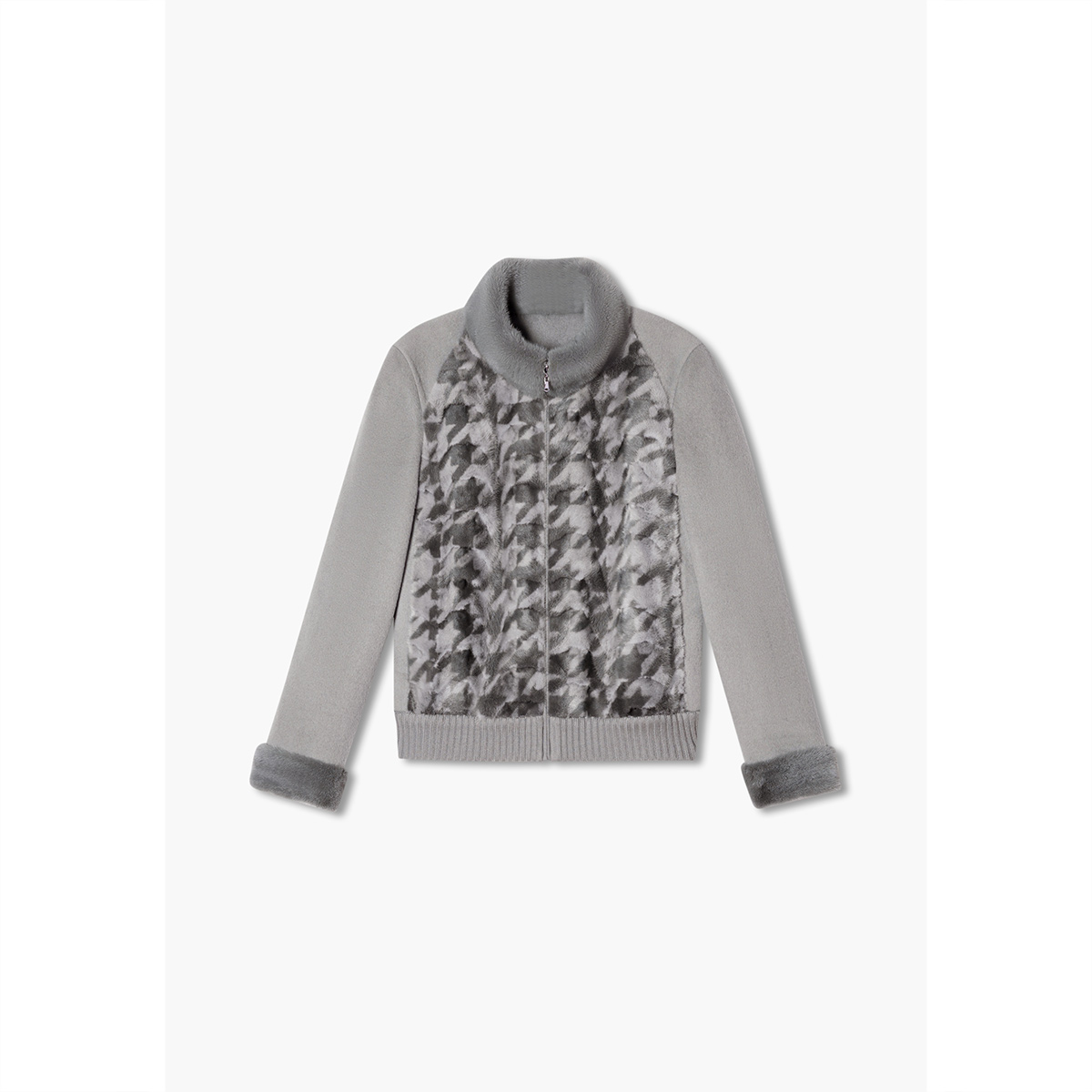 诗篇专选冬千金风羊毛双面呢水貂毛机车服外套皮草