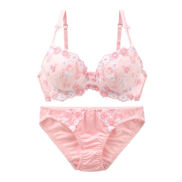 诗萝涵朵SHIROHATO内衣套装 女上托聚拢显大可爱蕾丝刺绣性感文胸