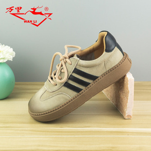 百搭系带通勤鞋 万里新款 单鞋 真皮舒适平底时尚 HRT235 复古休闲女鞋