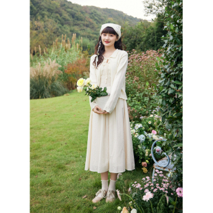紫涵碎花打揽吊带连衣裙女春秋季 森系田园风收腰A字中长裙子 新款