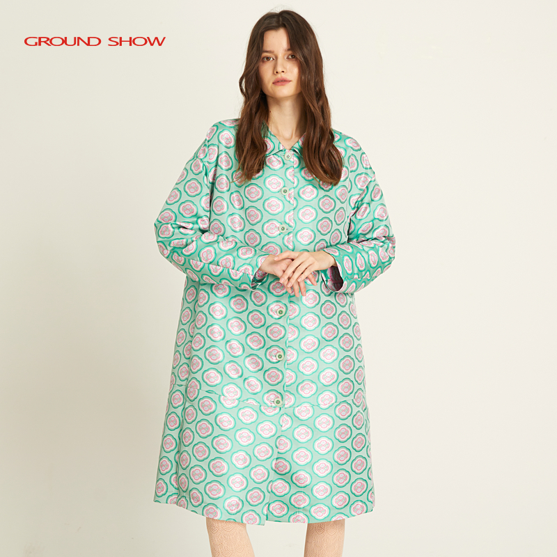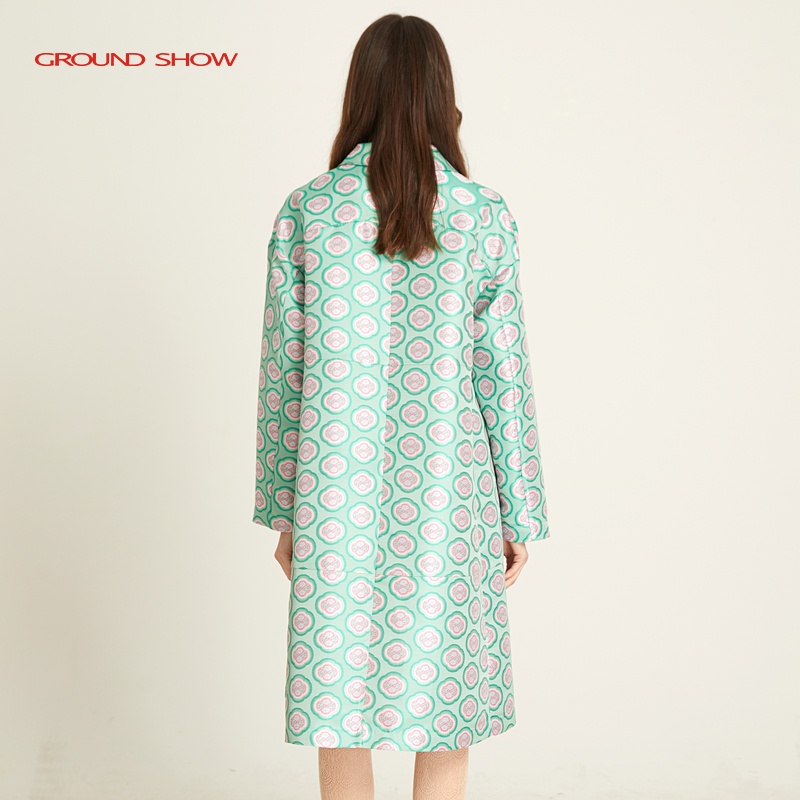翻领气质减龄 高端风衣外套长袖 阁兰秀2025春秋新品 绿色提花中长款