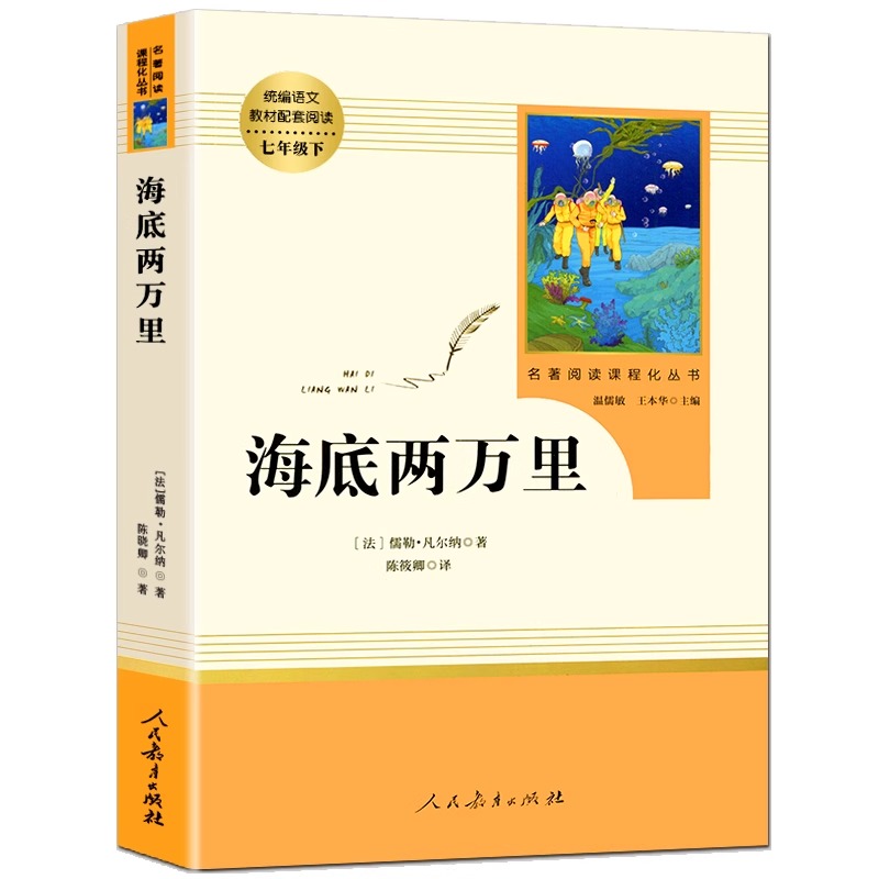 初一语文教材配套阅读名著书籍人民教育出版 人教版 图书原著凡尔纳原著配套七年级下册阅读名著课外书完整版 正版 社 海底两万里
