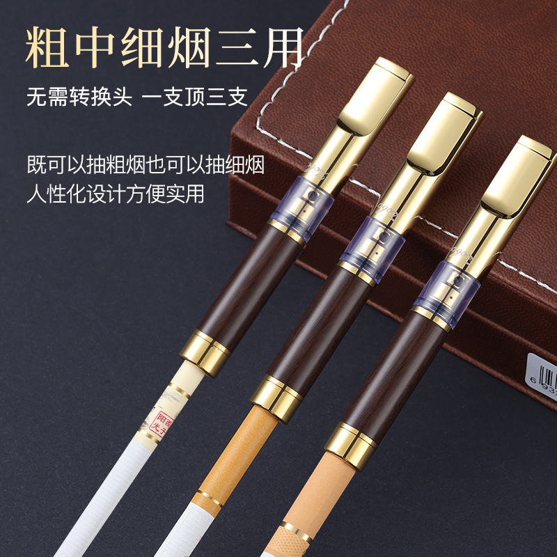 ZOBO正牌檀木烟嘴过滤器循环型男烟具粗中细三用可清洗焦油过滤嘴