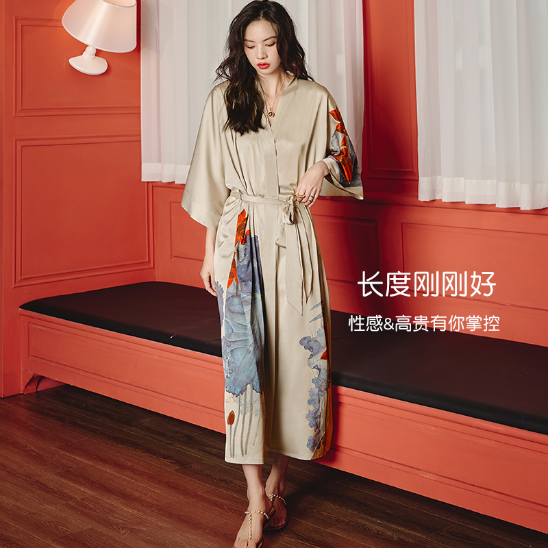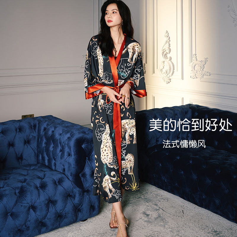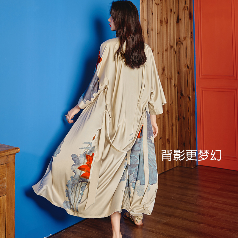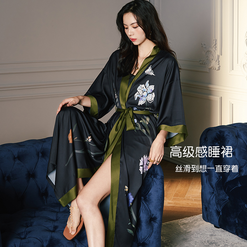 女睡袍夏季 睡衣浴袍仿真丝家居服美女睡裙性感浴衣 冰丝绸春秋大码