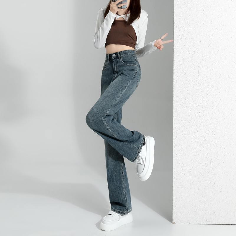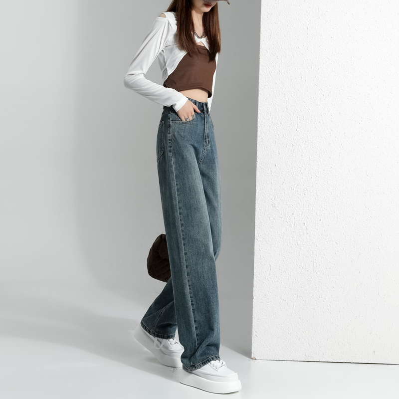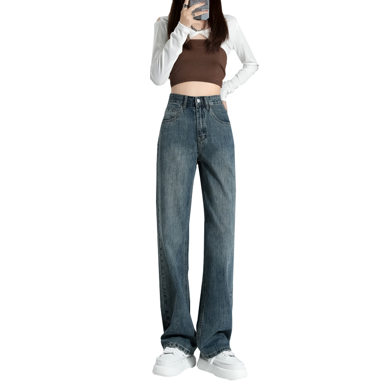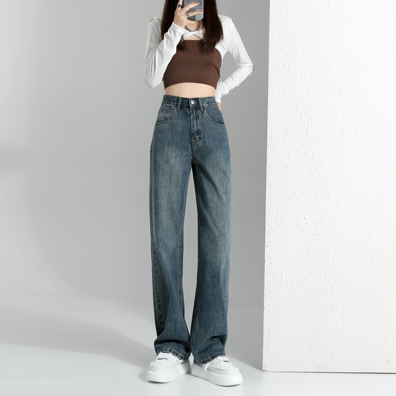 女士拖地裤 胖mm显瘦宽松直筒复古垂感窄版 秋 女大码 高腰阔腿牛仔裤