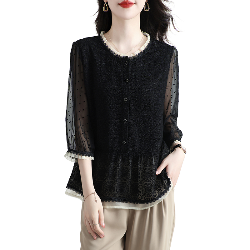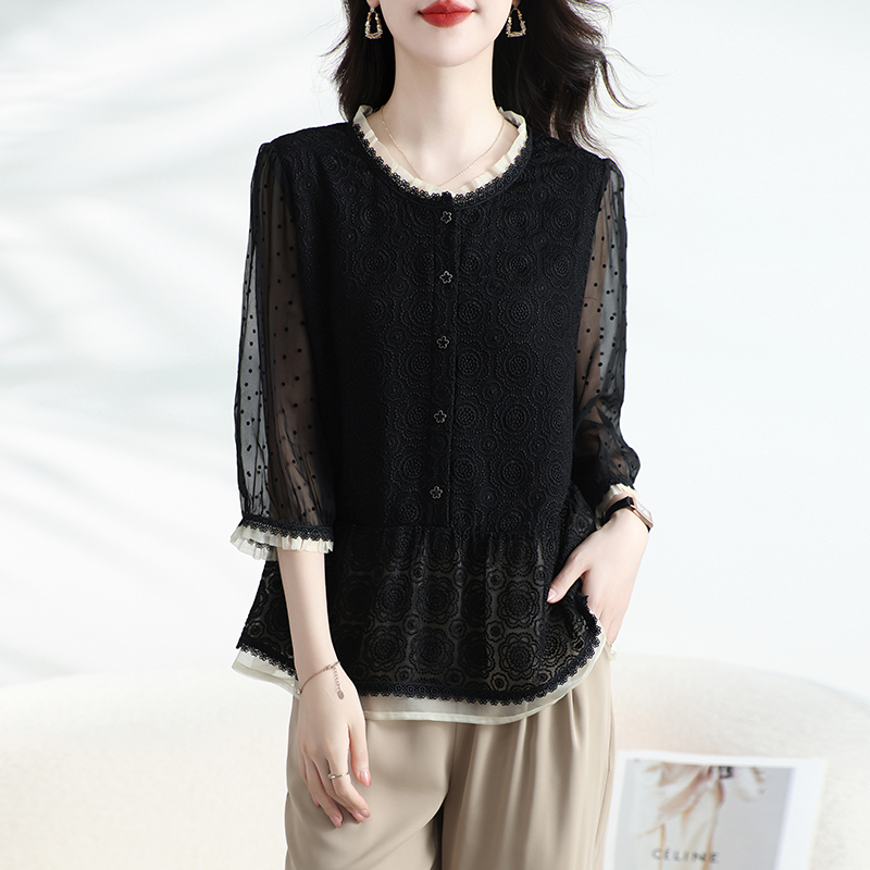 刺绣桑蚕丝T恤设计别致洋气夏季 气质时尚 高级真丝上衣女小衫 新款