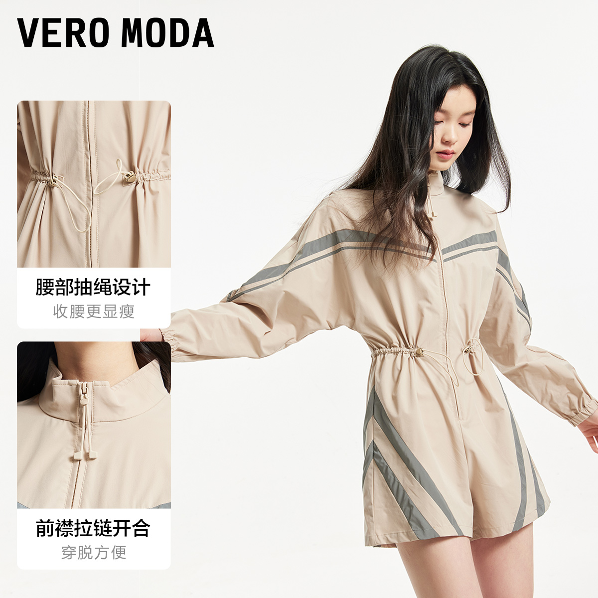 Moda奥莱连体裤 短裤 女秋季 撞色拼接休闲机能风长袖 流行 新款 Vero