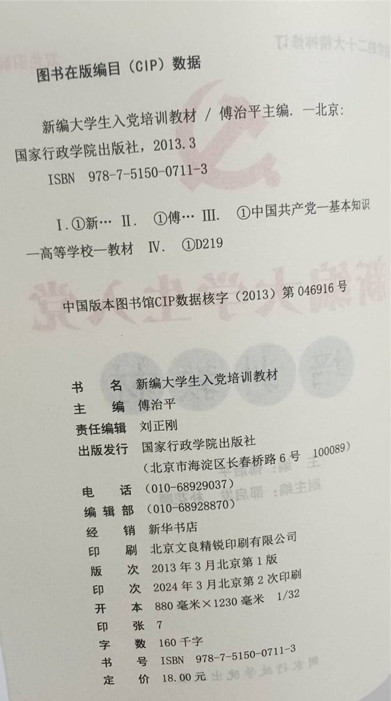 附新党章入党常用文书写法及范文国家行政学院出版 新编大学生入党培训教材 主编 傅治平 社9787515007113 双色图解版