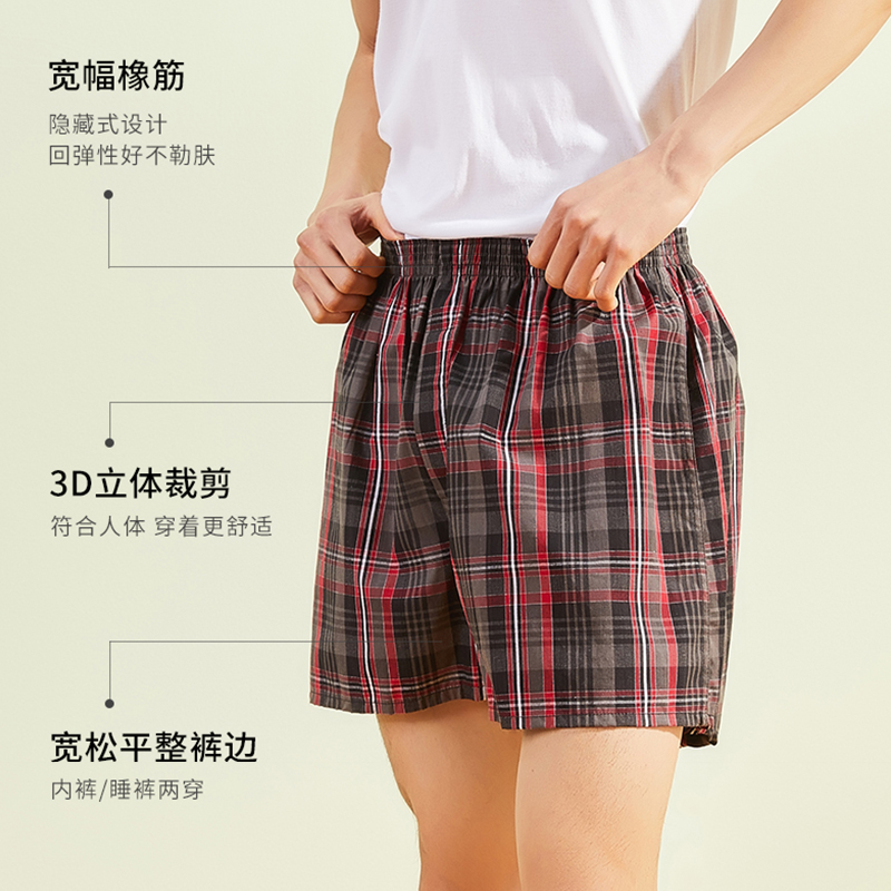 纯棉阿罗裤 头青年宽松四角内裤 平角沙滩裤 睡短裤 加大码 宜而爽男士