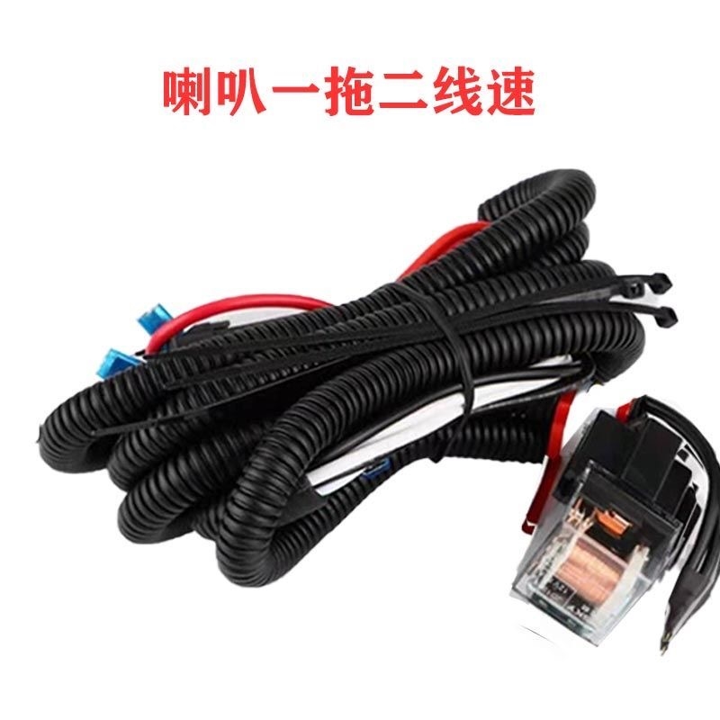 汽车摩托车电动车喇叭继电器线束一拖二改装 线蜗牛喇叭单改双12V