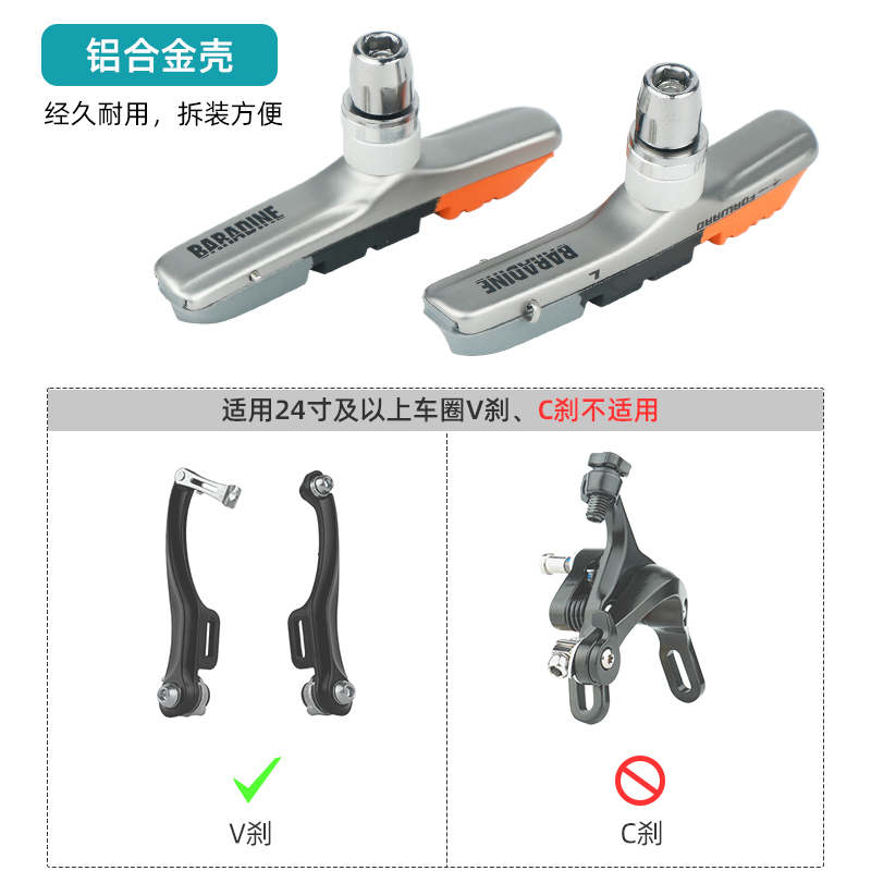 永杰Baradine山地自行车刹车块三色刹车皮V刹闸皮955VC铝壳可换皮