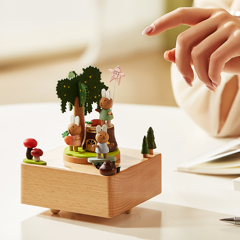 可旋转小兔子木质音乐盒八音盒儿童女孩女童创意摆件生日礼物女生