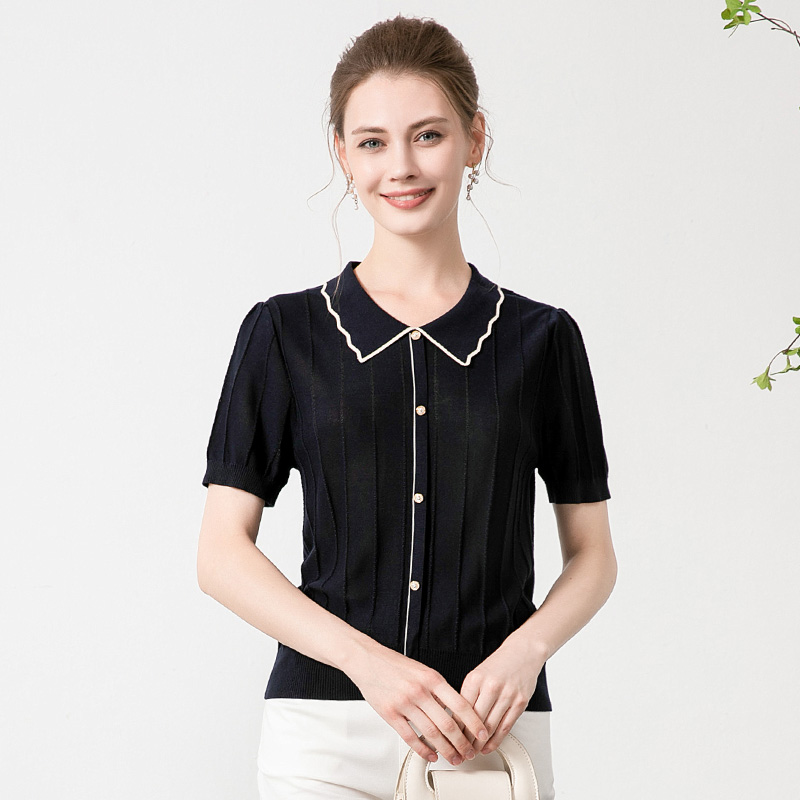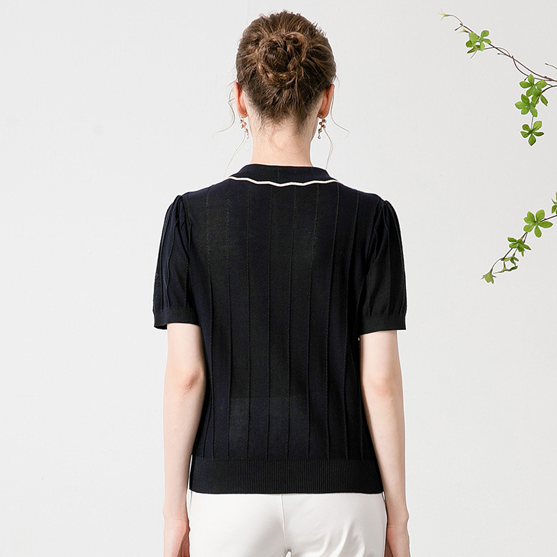 新款 赏心岁月中年妈妈莱赛尔天丝小衫 夏季 短袖 上衣 洋气套头针织衫
