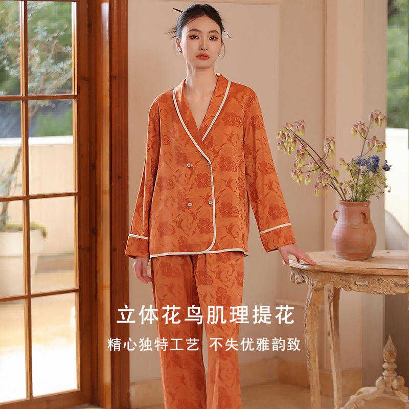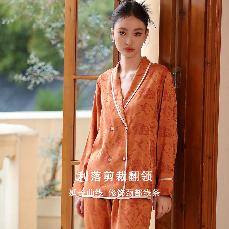 家居服套装 松子壳新中式 高级感新款 轻奢春秋季 国风冰丝睡衣女长袖