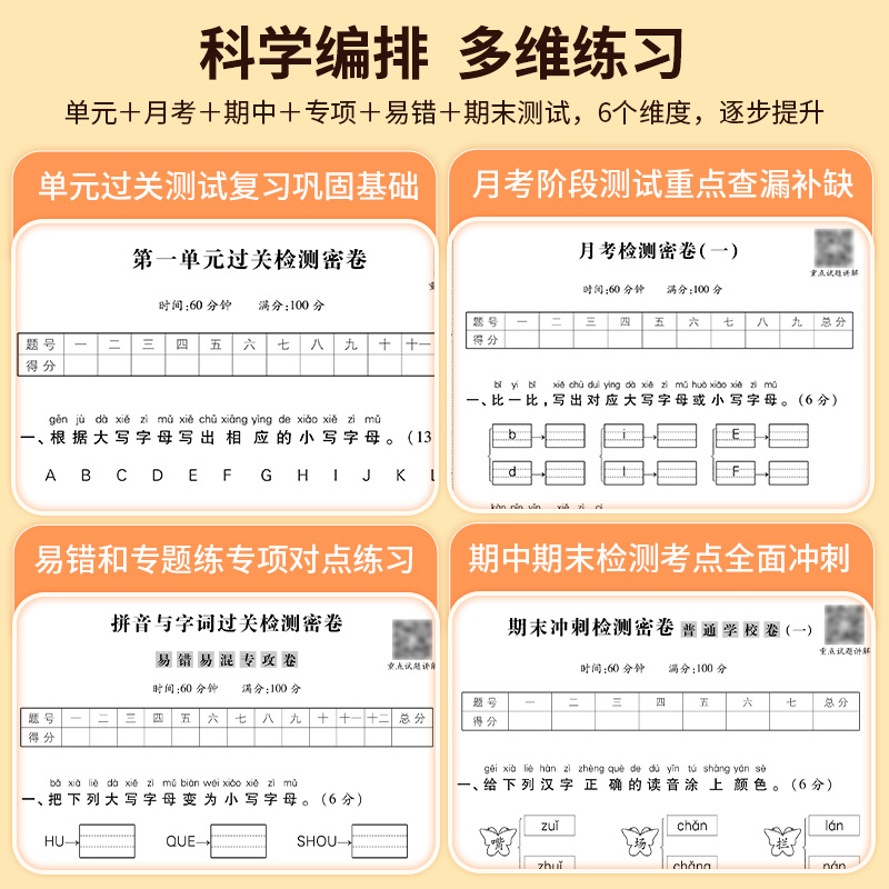 6年级语文数学英语检测试卷期中期末测评卷课本同步练习册小学卷子考试卷练习题 冲刺100分 小学一年级上册二三四五六年级人教版