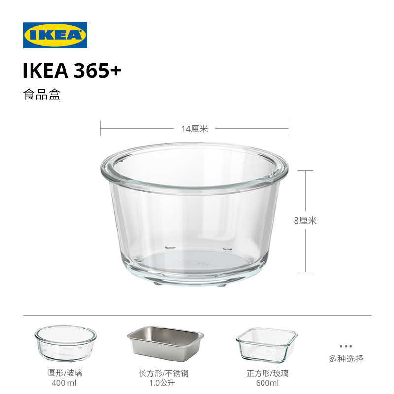 IKEA宜家IKEA365 食品盒饭盒微波炉加热玻璃碗上班族保鲜盒