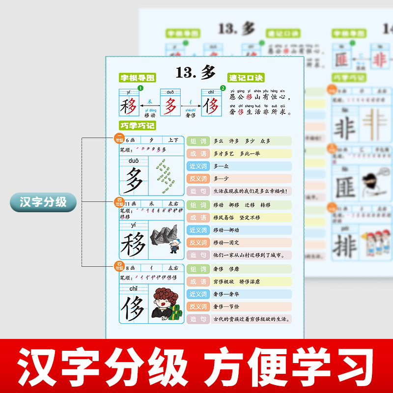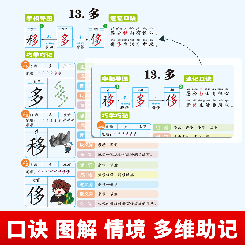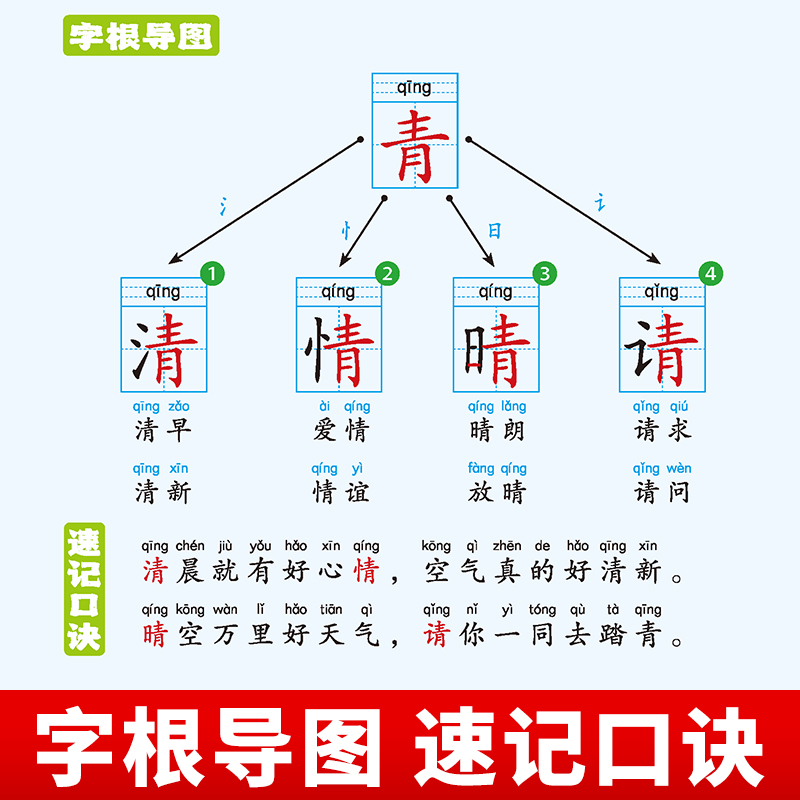思维导图速记汉字小学生语文同步人教版 生字开花生字组词造句预习卡偏旁部首组合口诀工具书幼儿园象形识字儿童汉字幼儿认字书