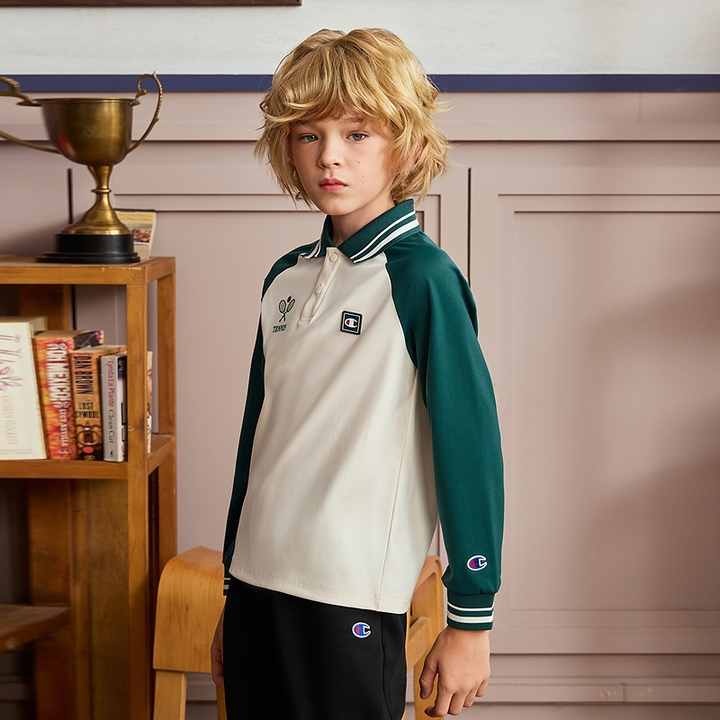 Champion冠军男女大小童25秋新款 T恤 复古网球风插肩弹力POLO长袖