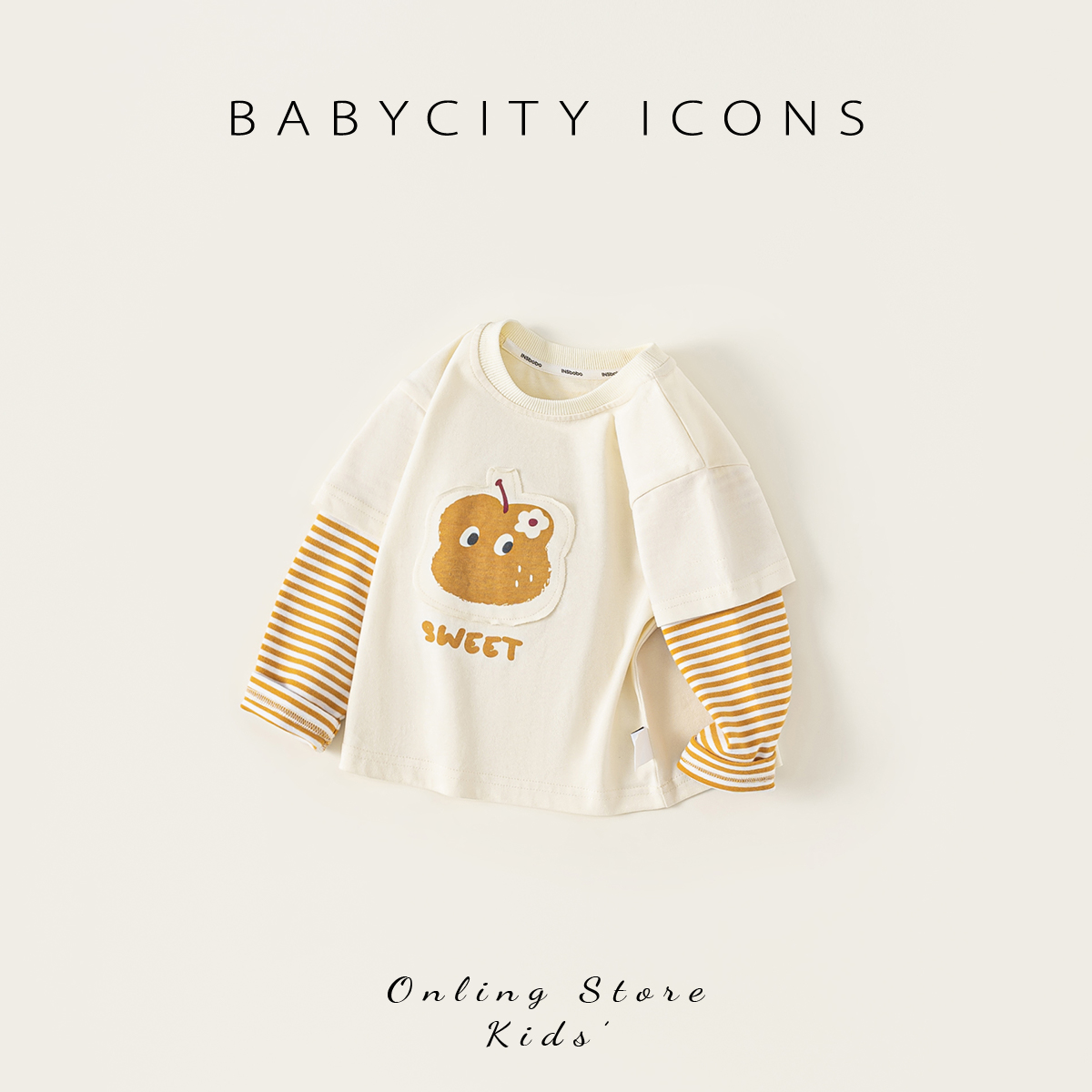 上衣时髦1岁小女孩假两件打底衫 贝贝城女童t恤春秋款 洋气女童长袖