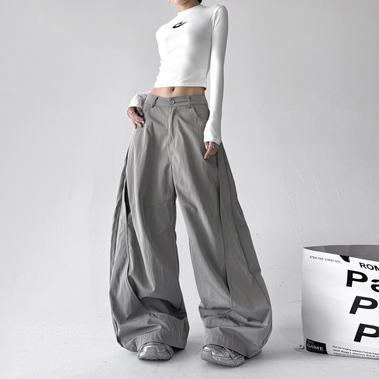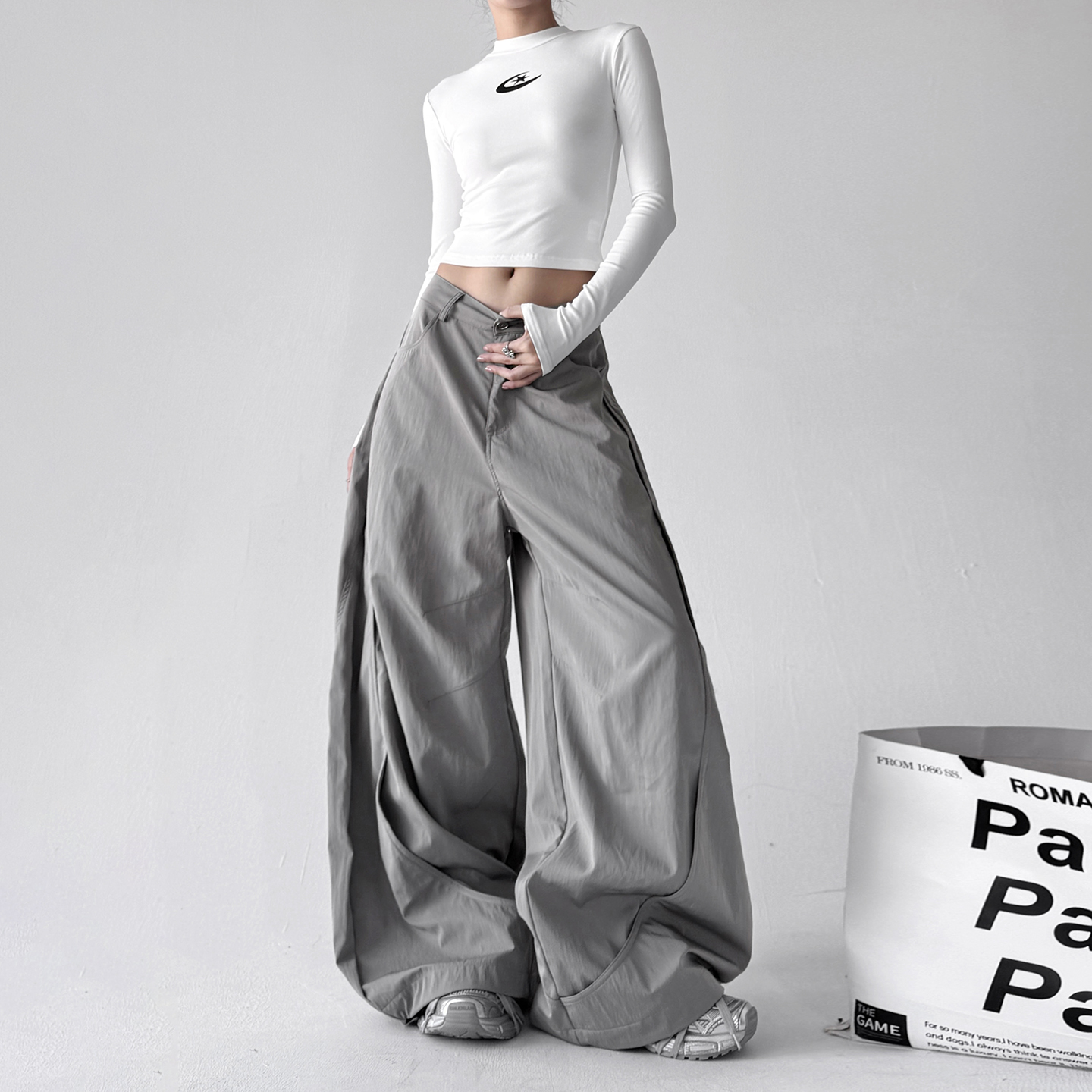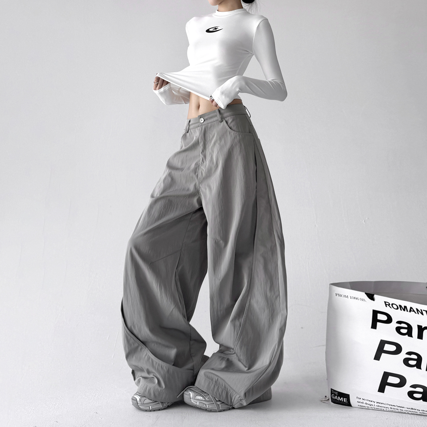 复古工装 美式 裤 女宽松显瘦休闲阔腿裤 子 2025秋季 高腰直筒长裤 新款