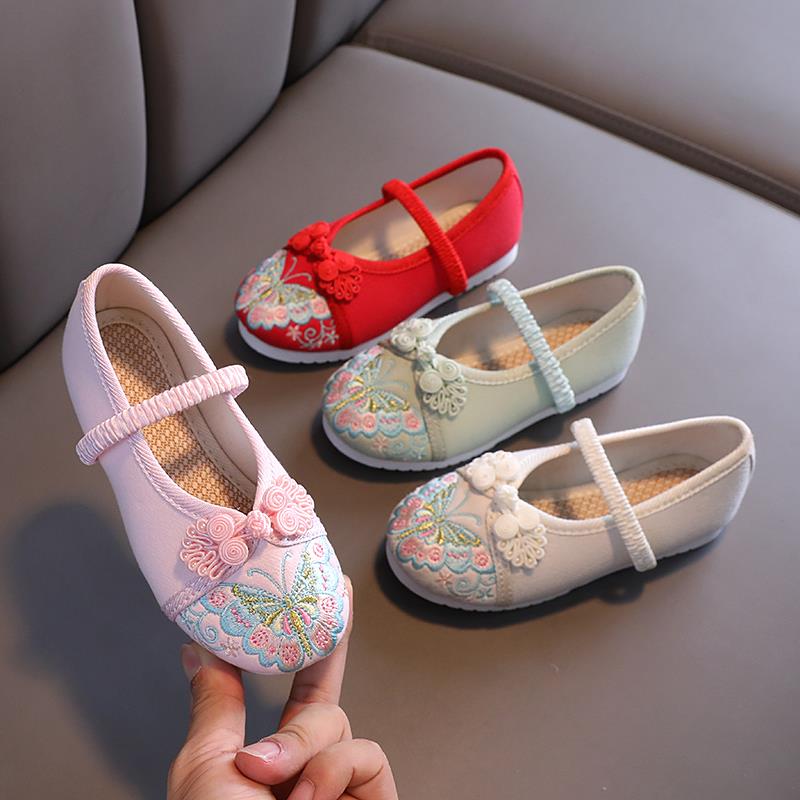 民族风舞蹈鞋 儿童汉服鞋 国风手工布鞋 马面裙古装 女宝宝幼儿绣花鞋